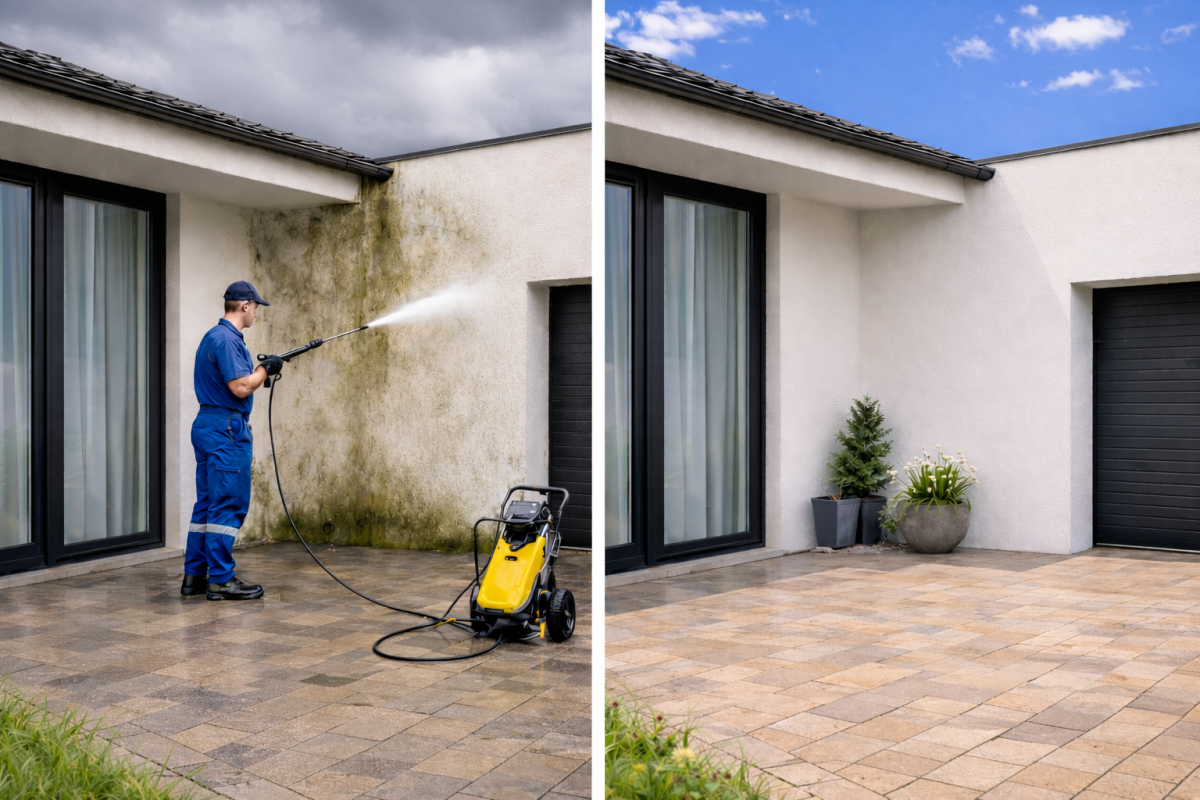 Redonnez à votre extérieur un éclat neuf grâce à un nettoyage professionnel des façades et sols extérieurs, éliminant saletés, mousses et traces de pollution pour un résultat visiblement transformé.